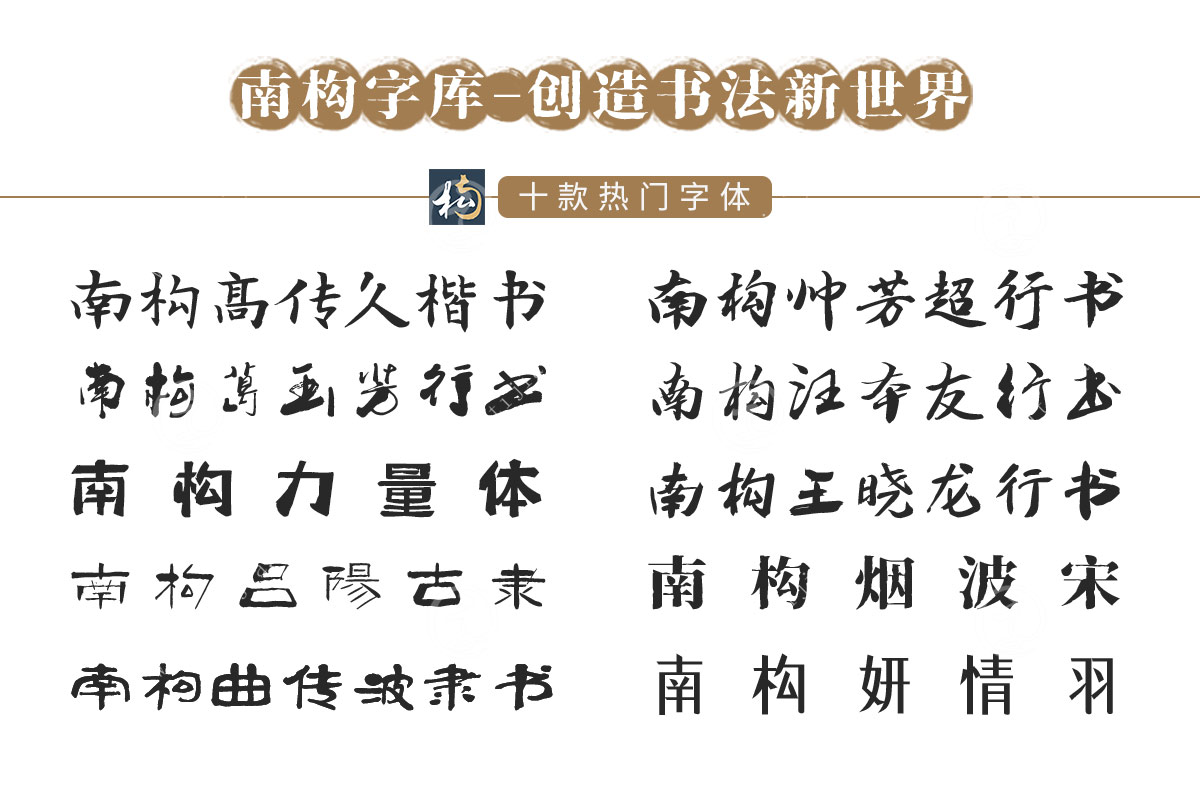 南构字体是新兴的一款字体,包含南构王小花手写字体、南构日漫风字体、南构散行、南构唐宝楷字体等等,可以满足不同用户的需求。可以广泛应用于广告设计、宣传海报、ppt、影视制作以及任何使用文字的领域。